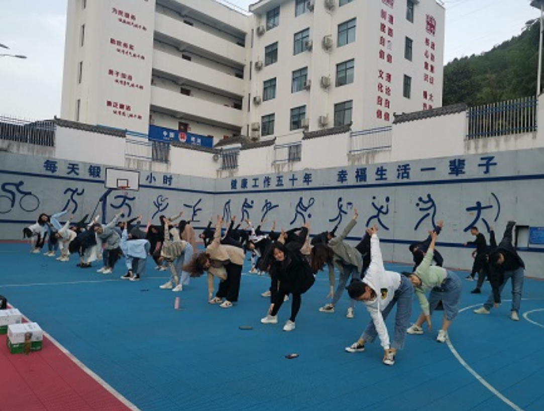 活动开始前,同学们整齐排列在操场上开展热身运动,伸伸胳膊、踢踢腿,通过热身运动学员们扫去久坐课堂的疲惫感。