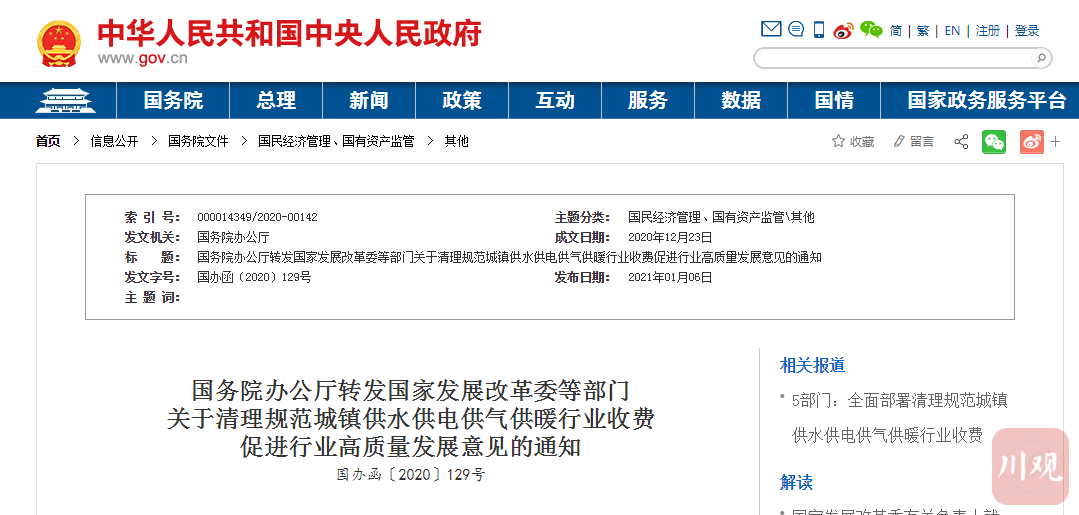 省发展改革委价格处相关负责人介绍,实际上,在2019年,四川省发展改革委、省住建厅、省市场监管局联合印发了《关于规范四川省燃气工程安装收费的通知》(以下简称《通知》),随之印发的还有《四川省燃气工程安装收费指南》(以下简称《收费指南》)。《收费指南》同样明确了取消“开通费”,根据《收费指南》,“涉及公共管网连接建筑区划红线或农村集中供气点的初装费、接驳费、开通费、户头费、开户费等费用,以及其他成本已纳入配气价格的表具更换等收费项目,一律不得收取,并不得变换名目另行收取费用。”