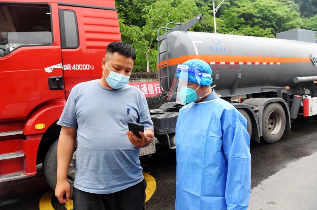 “师傅,您所行目的地是哪里呢?麻烦把口罩戴好,打开手机,出示健康码、行程码和48小时核酸阴性报告,再扫一扫入川码。”5月24日,在G108线七盘关查验点,值勤人员杨义正忙着对入川的驾乘人员进行信息查询、登记和体温检测。