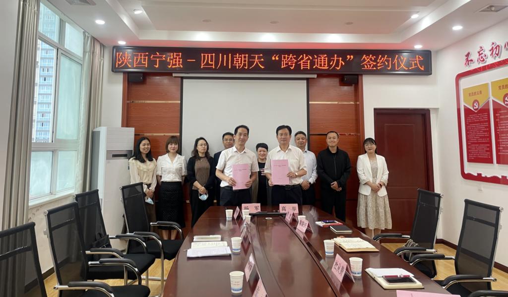为加快推进政务服务“跨省通办”,强化政务服务交流合作,积极探索朝天区和陕西省宁强县两地政务服务新模式,近日,朝天区行政审批局和宁强县行政审批局“跨省通办”政务服务战略合作协议签约仪式在宁强县举行,签署了《宁强——朝天“跨省通办”政务服务战略合作协议》。