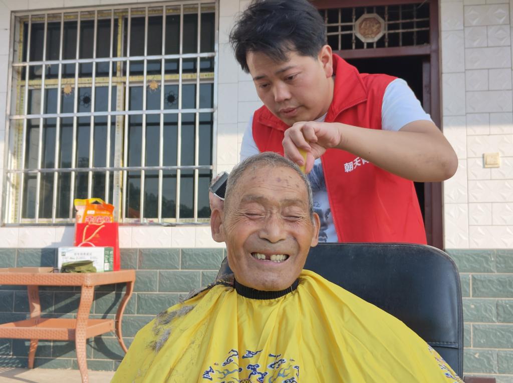 “真好啊,咱们在家门口就能免费理发,真的特别感谢这些好心的志愿者。”朝天镇青龙村的潘大爷一边理发一边和身边的老人诉说着内心的感激,并对志愿者师傅的手艺赞不绝口。