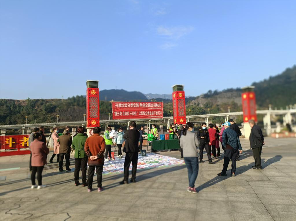 “大妈,你知道垃圾分几类吗?”“晓得,晓得,有四大类,可回收物、有害垃圾、厨余垃圾和其他垃圾。”……11月16日上午,朝天区城区陵江路广场上欢声笑语,热闹非凡。该区综合行政执法局的工作人员正组织群众开展以“懂分类 会宣传 不乱扔 让垃圾分类走进千家万户”“开展垃圾分类实践 争创全国文明城市”为主题的宣传活动。