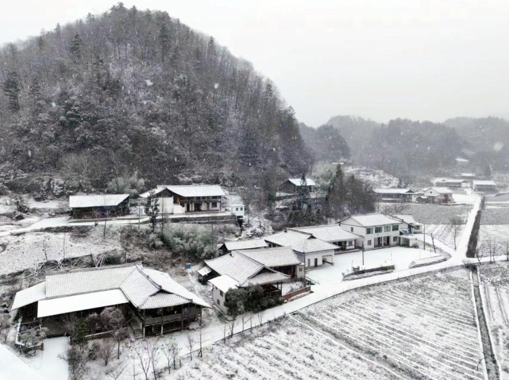 而伴随着持续袭来的寒潮,11月30日凌晨,曾家山景区开始大面积降雪,只见洁白的雪花纷纷飘落,山野村庄被妆点成了一个银装素裹的冰雪世界,曾家山境内的石笋坪、花千谷、鸳鸯池森林公园等景点也都披上了一层厚厚的白毯。树上挂雪、屋顶落雪、庭院堆雪……站在高处远眺,曾家山入目皆是一片素白,白雪在山顶聚集,给座座青山扣上了一顶顶蓬松的圆形礼帽。