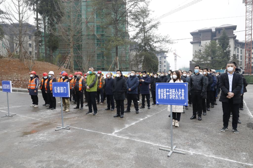 区领导王国章、冯大发、徐笑梅,重庆坤伍房地产集团有限公司负责人,区级有关部门主要负责人,曾家镇干部、群众代表,业主及施工单位代表参加开工仪式。