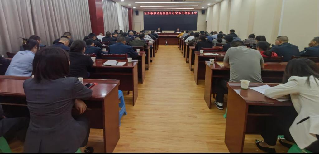 近日,区外事和公务服务中心组织召开全体干部职工会议,全体干部、司勤人员和物管部工作人员共80余人参加了会议。