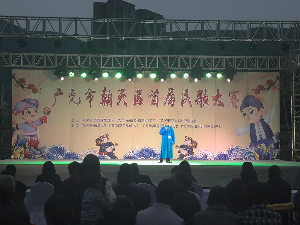 “核桃大,啰喂,核桃香,啰喂,朝天的核桃多啰,收成好,啰喂……”5月11日晚,以“奋进新时代 筑梦新朝天”为主题的朝天区首届民歌大赛在朝天大酒店广场拉开帷幕。