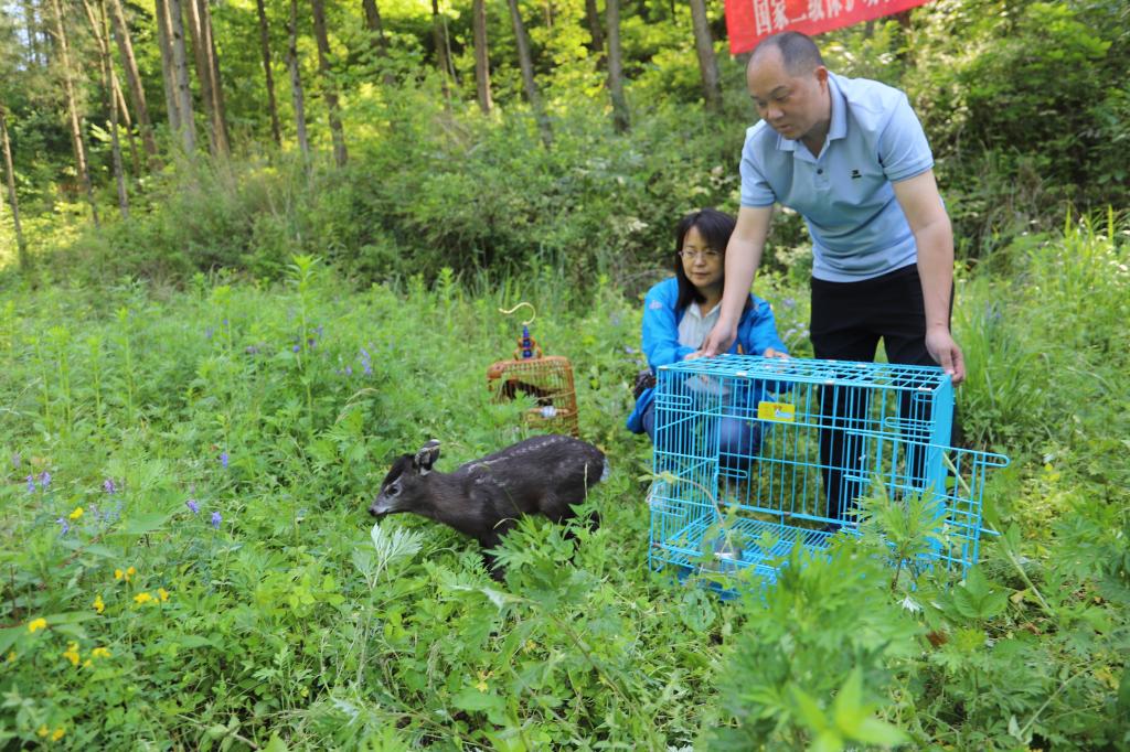5月30日,国家二级保护动物毛冠鹿放生活动在朝天区曾家镇举行。放生现场,市、区林业部门相关负责人员一道,将毛冠鹿、红嘴山鸦成功放归自然。