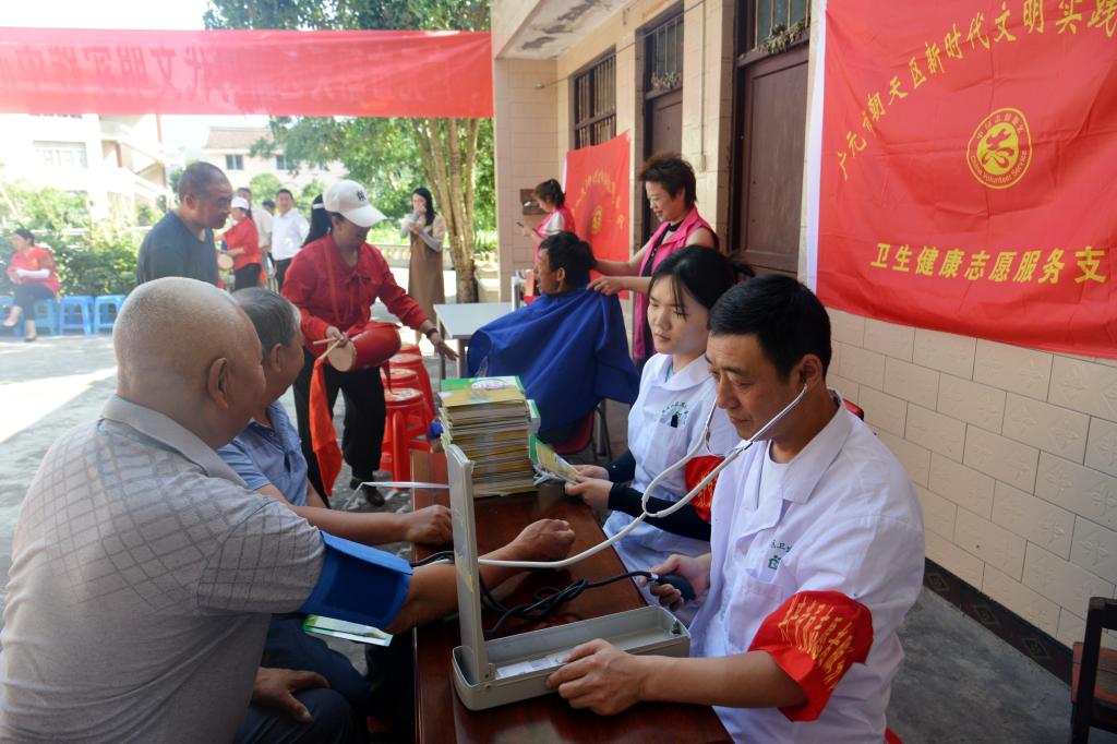 6月30日,广元市朝天区新时代文明实践中心志愿服务总队“七一”志愿服务活动在朝天区朝天镇朝天村举行,活动现场,由理论宣讲志愿服务支队、普法守法志愿服务支队、卫生健康志愿服务支队、巾帼志愿服务支队等志愿服务支队为朝天村的党员群众进行了理论宣讲、普法知识讲座、文艺表演、爱心义诊、免费为党员群众理发等志愿服务活动。