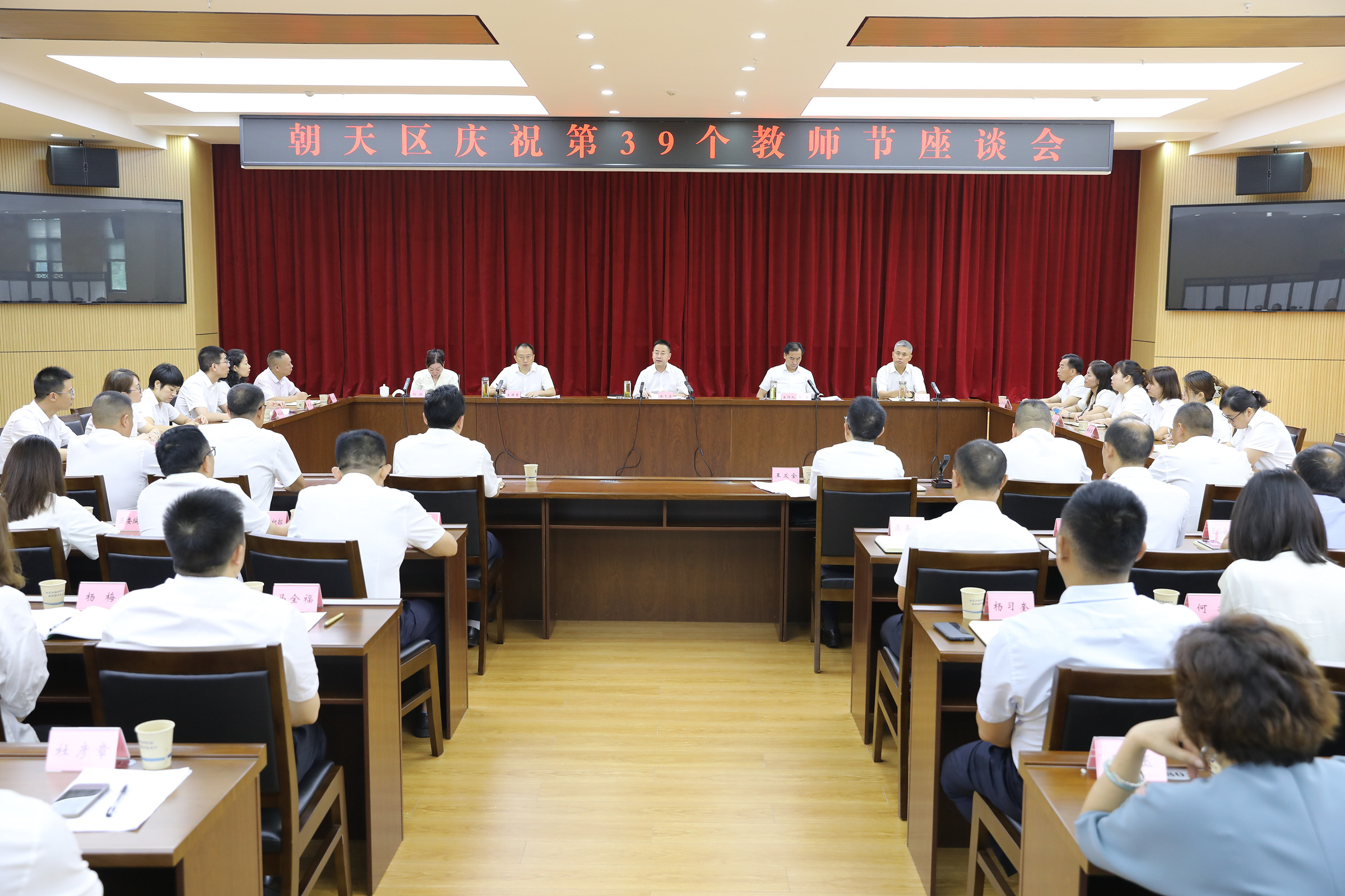 本网讯(王杰)在第三十九个教师节来临之际,9月8日,区委书记余飞宇,区委副书记、区长张骏分别带队调研部分学校,看望慰问教师代表,并召开庆祝第39个教师节座谈会。向全区广大教职员工和离退休老教师们致以节日问候,勉励全区广大教师和教育工作者要不忘立德树人初心,牢记“为党育人、为国育才”使命,以更高质量的教育为朝天增光添彩、贡献力量。