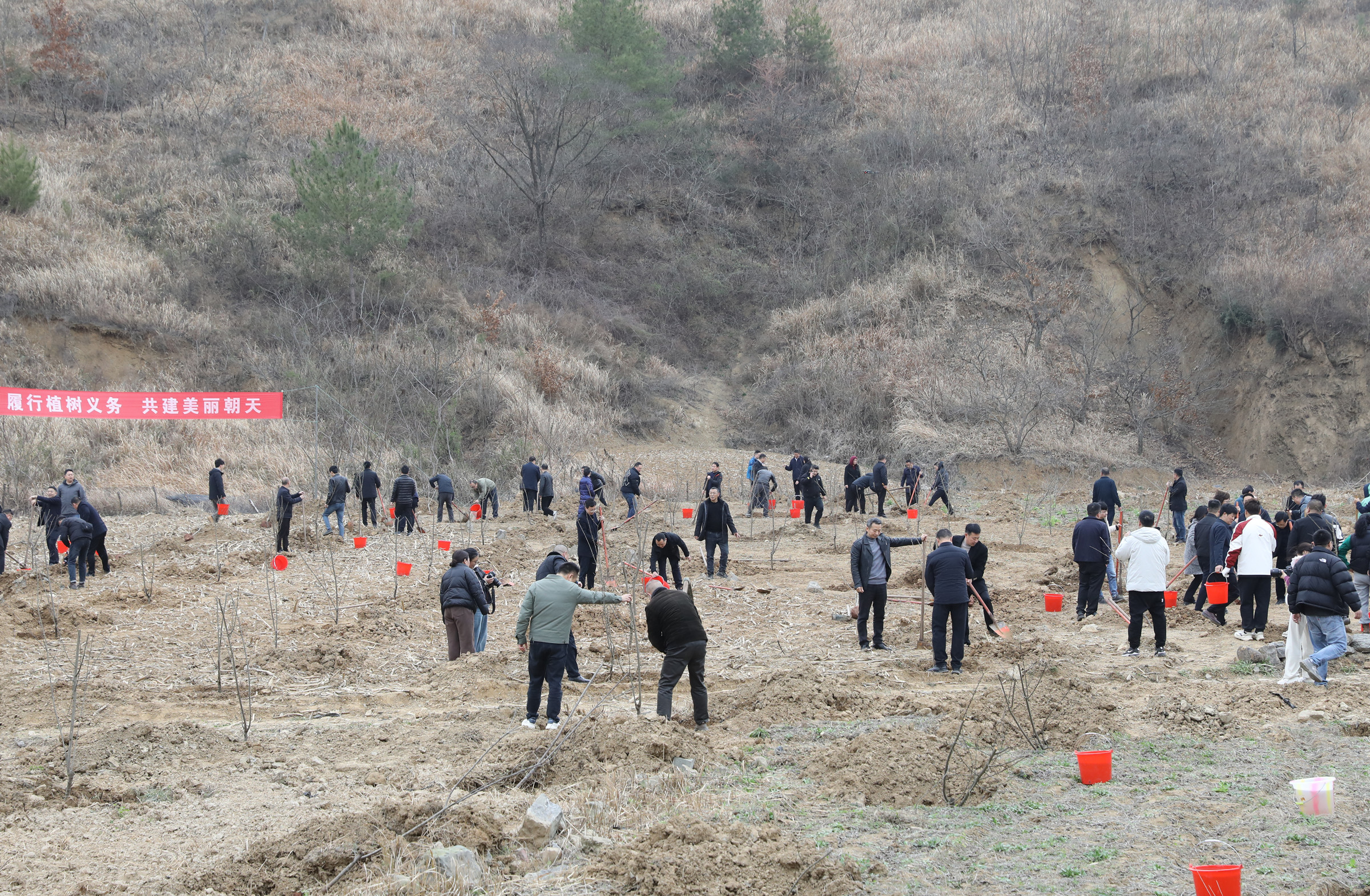 来到义务植树点,区委书记余飞宇,区人大常委会主任张开翅,区政协主席薛长勋等区四大班子领导拿起铁锹等工具,与干部群众一同投入到植树劳动中。大家分工协作,挥锹铲土、扶苗培土、围堰浇水,每道工序紧密衔接、配合默契,植树现场一派热火朝天的景象。在大家的辛勤劳作下,新栽的3000余株蜂糖李小树苗迎风挺立、错落有致,孕育着勃勃生机,焕发出绿色希望。