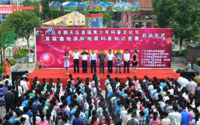 (仇素淑文 钟卫东 图)5月22日,朝天区首届青少年科普文化节、首届“鑫地源杯”地震科普知识竞赛活动启动仪式在同乐园广场举行。区委常委、宣传部长张大鸿出席启动仪式。