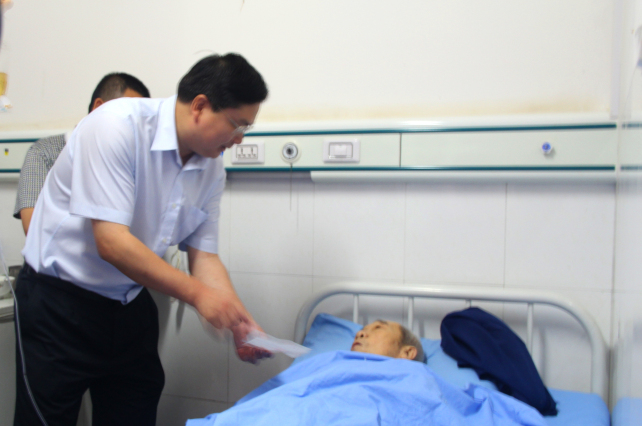 东溪河乡88岁老党员吴国贤,在“5·12”地震、芦山地震后先后把自己省吃俭用节省下来的2万元养老金全部捐献给了灾区,如今老人身患重病躺在医院,已花费医疗费高达2万多元,家庭生活十分困难。来到医院病房,看到病床上瘦骨嶙峋、脸色苍白的吴国贤老人,张开翅仔细询问了他目前的治疗情况和身体恢复状况,送上了慰问金和慰问品,并把各大媒体对他先进事迹报道的稿件一一给老人看过,还关切地对他说:“老人家,‘七一’快到了,我代表区委来看望您,在国家、民族有困难的时候,您总是心系祖国、无私奉献,体现了一名共产党员的高尚品德。希望您安心养病、早日康复!”并叮嘱家人要好好照顾老人。