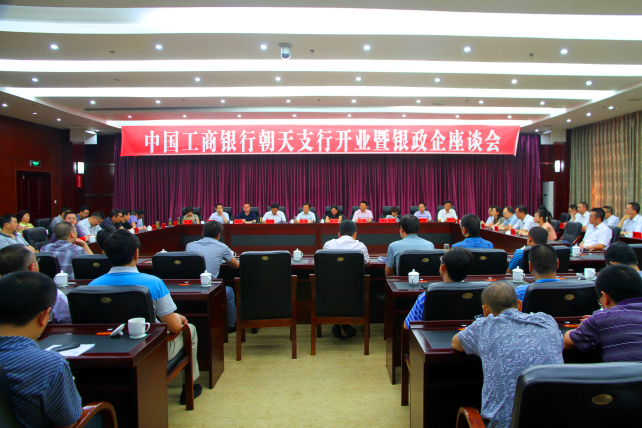 本网讯(杨春恩)7月28日上午,我区召开工商银行朝天支行开业暨银政企座谈会。副市长陈凯,工商银行四川省分行党委委员、副行长陈丹,市金融办主任王镇,广元银监分局局长袁益富,人行广元市中心支行副行长何志诚,工商银行广元分行党委书记、行长刘远为,区委书记蔡邦银出席会议并讲话。区委副书记、区长伏玉琼主持会议。区人大常委会主任梁黎,区政协主席贾光升及工商银行省、市、区相关负责人出席会议。