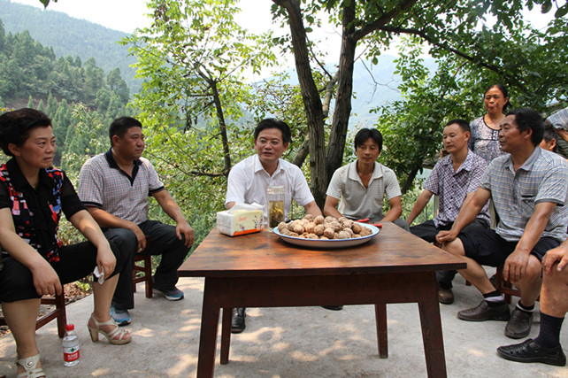 到群众中间去,倾听群众心声。蔡邦银来到西北乡上坝村,与群众亲切交谈,详细了解村民人居环境改善、家庭经济收入等情况。“几年前的这里,不但土地条件差,交通也不方便,好不容易种出的粮食要费尽周折才能运出去卖掉。土地整理项目把我家土地作了平整,政府也把水泥路修到了家门口,出行生产方便多了,现在我们只管把粮食种好,到时候车开到门口头,直接运走。三年前政府指导我种植的核桃也刚挂果,收益还是很不错的!再加上政府的‘一建三改’项目,我们也吃上了自来水,用上了沼气,生活越过越好。”村民郑云先边说边打开沼气灶,让大家感受他家现在红红火火的新生活。看到村容村貌整洁有序,群众生产生活积极,蔡邦银非常高兴,鼓励大家继续发扬自力更生精神,因地制宜,大力发展核桃、藤椒、蔬菜、魔芋等特色产业,通过组建专合组织,提高生产、经营组织化和标准化程度,不断增加家庭收入。