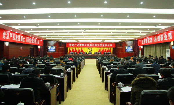 本网讯(杨春恩)1月20日,中国共产党朝天区第六届委员会第九次全体会议召开。会议的主要任务是:学习贯彻党的十八届四中全会、省委十届五次全会、市委六届九次全会和中央、省委经济工作会议精神,全面总结2014年工作,安排部署2015年经济社会发展工作和全面推进依法治区、从严治党工作。