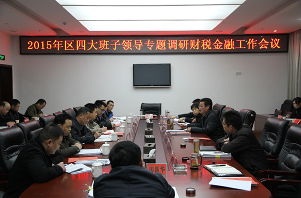本网讯(杨春恩)2月13日下午,区四大班子专题调研2015年财税金融工作会召开,区委书记蔡邦银出席会议并作重要讲话。区人大常委会主任梁黎,区政协主席张晓春出席会议。