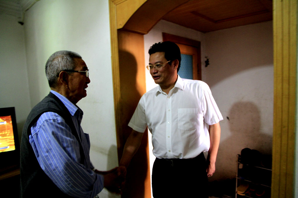 在退休党员干部李明显家中,蔡邦银与老人拉家常,话发展,一起展望朝天的未来。“近几年,朝天区经济社会发展迅速,特别是城市基础设施建设不断完善,城乡环境得到明显改善,群众对区委区政府的工作满意度不断提升,这些成绩令人欣慰。”李明显希望区委区政府继续坚持“一张蓝图绘到底、一届接着一届干、一以贯之抓落实”的工作思路,把朝天建设得更加漂亮。得知老人刚刚荣获“全市离退休干部先进个人”称号,蔡邦银向他表示祝贺,并希望他再接再厉,一如既往地关注和支持朝天改革发展,为建设生态文明繁荣和谐新朝天作出更大贡献。