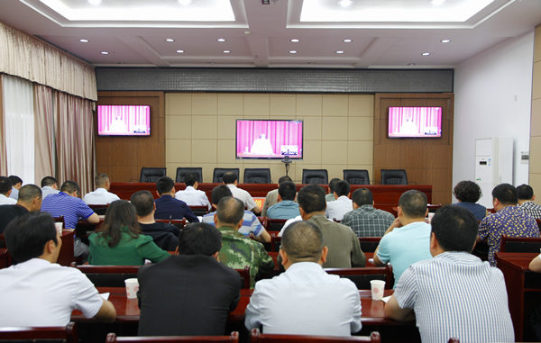 区相关部门及乡镇负责人在朝天分会场参加会议。