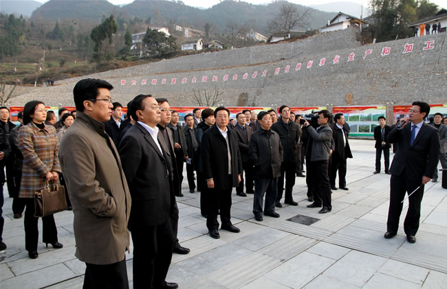 本网讯:12月21日,参加全省林业产业发展现场会的与会代表,在省委常委、省委农工委主任李昌平,市委副书记、市长马华,市委副书记王菲,副市长陈凯的带领下,先后赴我区沙河镇岳家村核桃示范基地、沙河镇三湾核桃采穗圃、朝天镇双河村核桃示范基地、中子现代林业(核桃)示范园区参观考察。