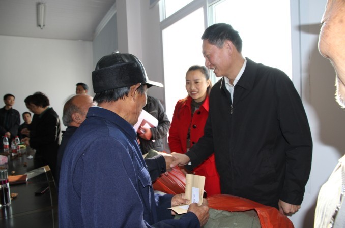 王振会向蒿地村部分党员、群众代表送上越冬慰问品