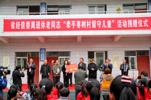 在中子小学举行的关爱中子镇枣树村留守儿童“手拉手”爱心捐赠仪式上,苏良华主任代表省经信委离退休老干部为70余名枣树村留守儿童捐赠了价值2万余元的学习用品、书籍及助学金。她叮嘱孩子们要珍惜今天来之不易的学习机会,不断磨砺意志,自立自强,迎难而上,刻苦学习,以优异成绩回报社会。