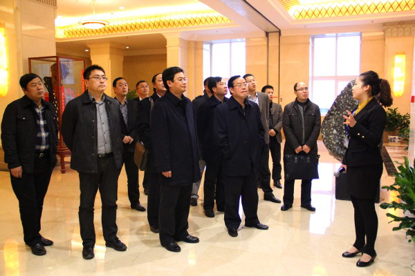 在海螺集团总经理助理丁峰的陪同下,张康明、蔡邦银先后参观了海螺集团总部成就展厅、中控室、物流调度中心,观看了海螺集团30年发展宣传片,详细了解了海螺集团的发展状况及项目扩张投资情况。