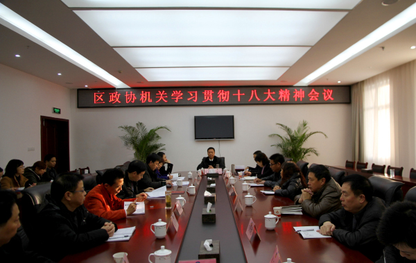 会议指出,要把学习宣传和贯彻落实十八大精神作为区政协机关当前和今后一个时期的首要政治任务,抓好学习载体,创新学习形式,丰富学习内容,深刻领会和准确把握十八大精神实质,把思想和认识统一到十八大精神上来,不断提升思想认识和理论水平。