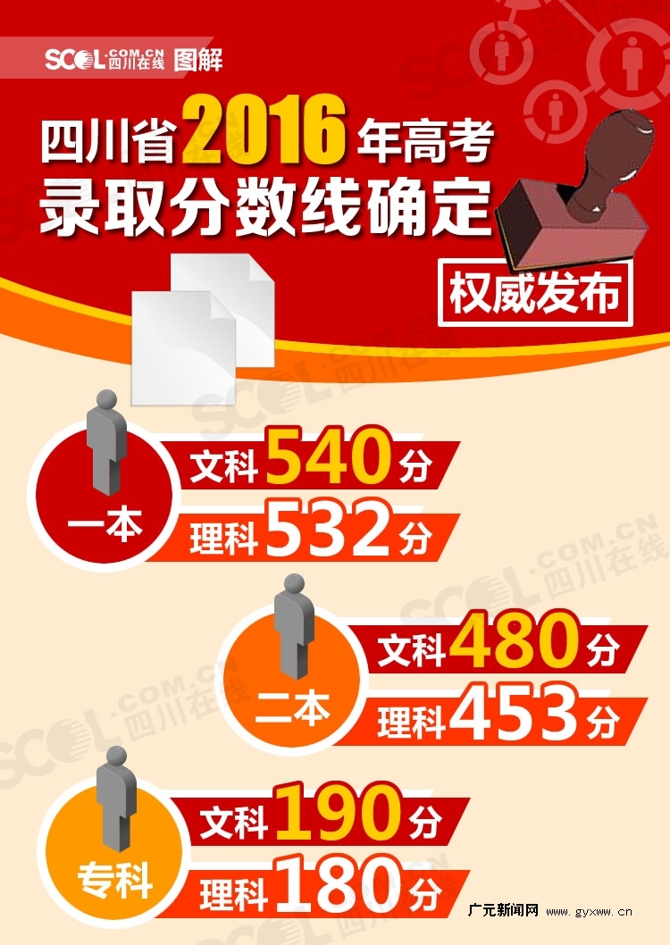 原标题:四川高考分数线出炉 一本:文科540分 理科532分