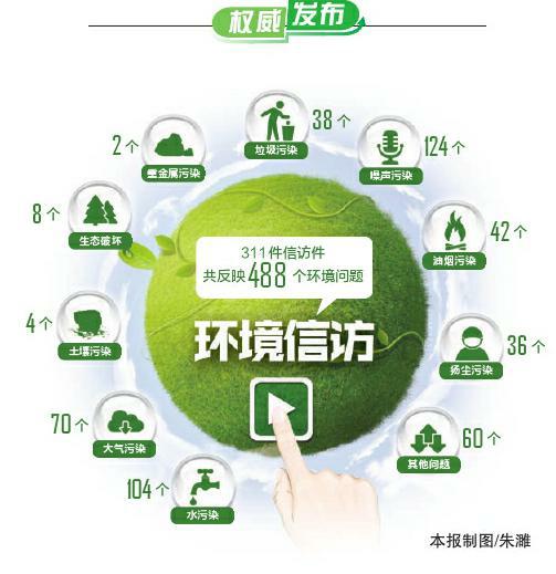 按照属地管理原则,信访件转交相关市州政府组织办理。第二十一批信访件从地区看,成都市共109件,此外还有10个市的投诉超过10件,分别为南充市24件、德阳市18件、眉山市18件、绵阳市15件、乐山市15件、宜宾市14件、遂宁市12件、内江市12件、雅安市11件、达州市10件。311件信访件共反映488个环境问题,其中涉及水污染104个、大气污染70个、土壤污染4个、生态破坏8个、重金属污染2个、垃圾污染38个、噪声污染124个、油烟污染42个、扬尘污染36个、其他问题60个。