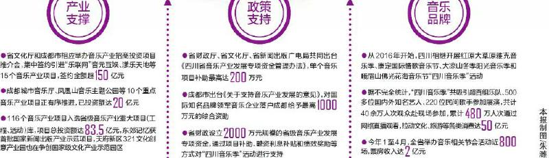 鼓励以企业为主体举办音乐活动。从2016年开始,四川打造“四川音乐季”,培育出春季乐山以旅游文化为主题的“峨眉山佛光花海音乐节”,夏季阿坝州以原创藏歌为特色的“红原大草原夏季雅克音乐季”,秋季甘孜州以情歌为基调的“康定国际情歌音乐节”,冬季凉山州以彝歌会为基础的“四川大凉山冬季阳光音乐季”。
