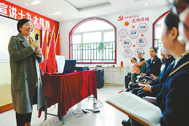 10月26日下午,占地斯门在大邑县晋原街道新乐社区宣讲党的十九大精神