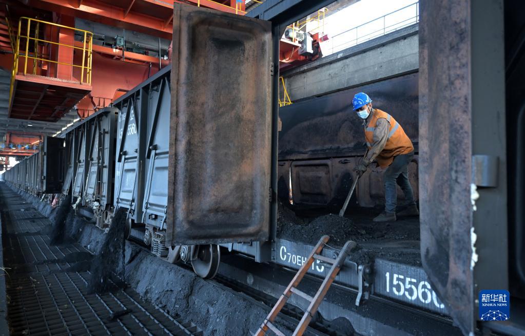 1月19日,在大唐安徽发电有限公司淮南洛河发电分公司,工作人员进行卸煤作业。新华社记者 周牧 摄
