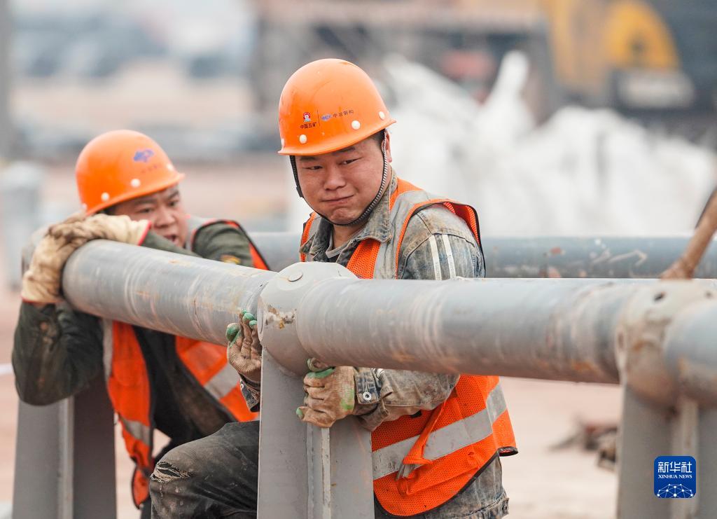 1月23日,工人在重庆两江新区新能源汽车产业园基础设施配套项目现场进行钢结构材料拼装作业。新华社记者 刘潺 摄