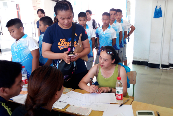 ,参加2106四川省青少年举重锦标赛的运动队,陆续到达朝天区朝天中学指定地点报到。
