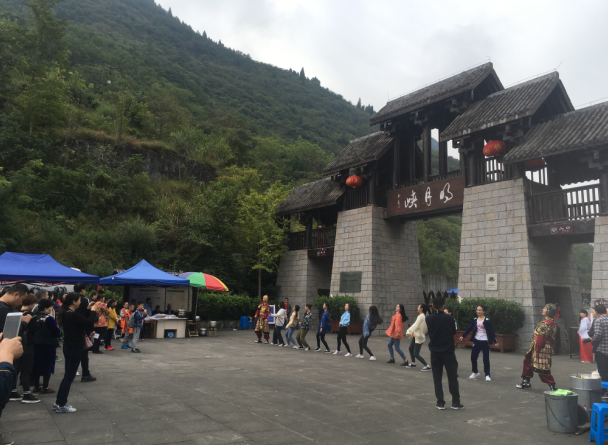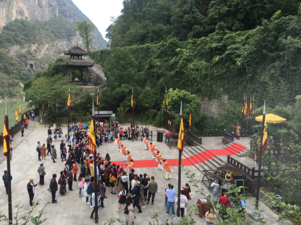 与此同时,明月峡、龙门阁.雪溪洞景区还分别开展了精彩纷呈的景区活动:年轻一族们激情飞扬的“快闪”舞蹈、评书艺术家的现场散打解说、演武场上茶艺的绝活表演、人偶福狗的喜感合影等等吸引着无数游客驻足观看。
