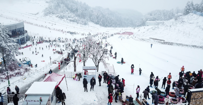 冬日的曾家山更是别有一番风味,玉树琼花,银装素裹,滑雪场内,儿童城堡里洋溢着孩子们的欢声笑语,滑雪勇士们“全副武装”在雪道上激情飞舞,网红景观引来帅男靓女驻足留影……