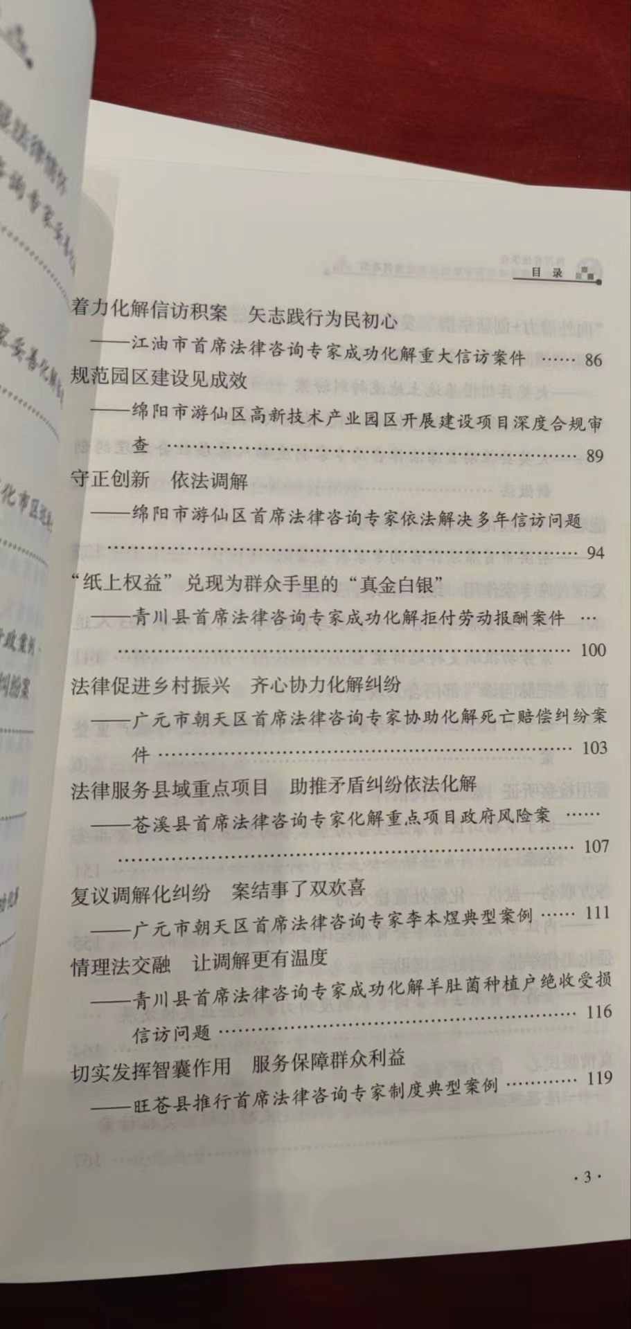 近日,由省法学会编纂的《推行首席法律咨询专家制度典型案例选编》(下册)出版发行,在共征集的600多篇案例中收录77篇。朝天区2篇案例上榜,分别为广元市朝天区首席法律咨询专家李本煜、向海清撰写的《复议调解化纠纷 助推矛盾纠纷依法化解》、《法律促进乡村振兴 齐心协力化解纠纷》。