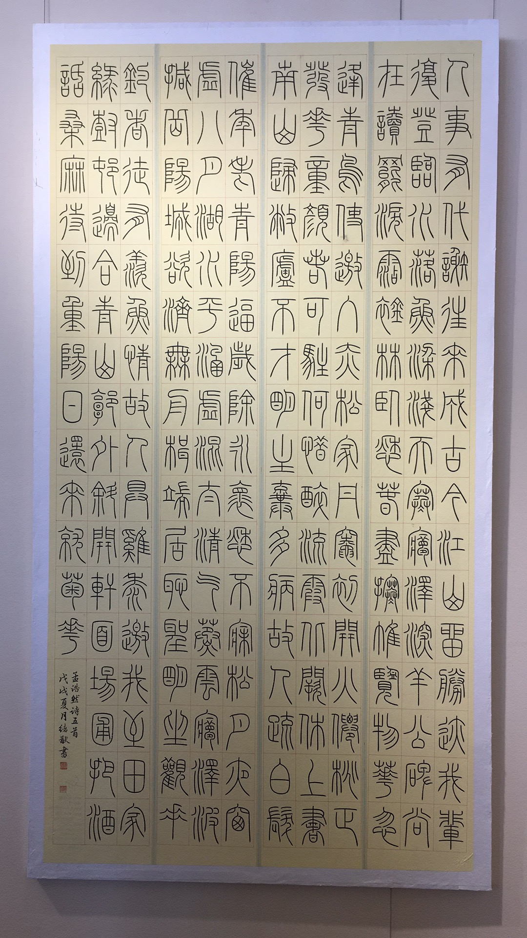 近日,由中国书法家协会主办的全国第三届篆书作品展在河南省漯河市科教文化艺术中心盛大开幕,我区赵绪猷同志书法作品《孟浩然诗抄》入展。全国篆书名家邀请展也同期亮相,来自全国各地的书法家及书法爱好者共计2000余人观展,中国书法家协会副主席包俊宜出席开幕仪式并讲话。