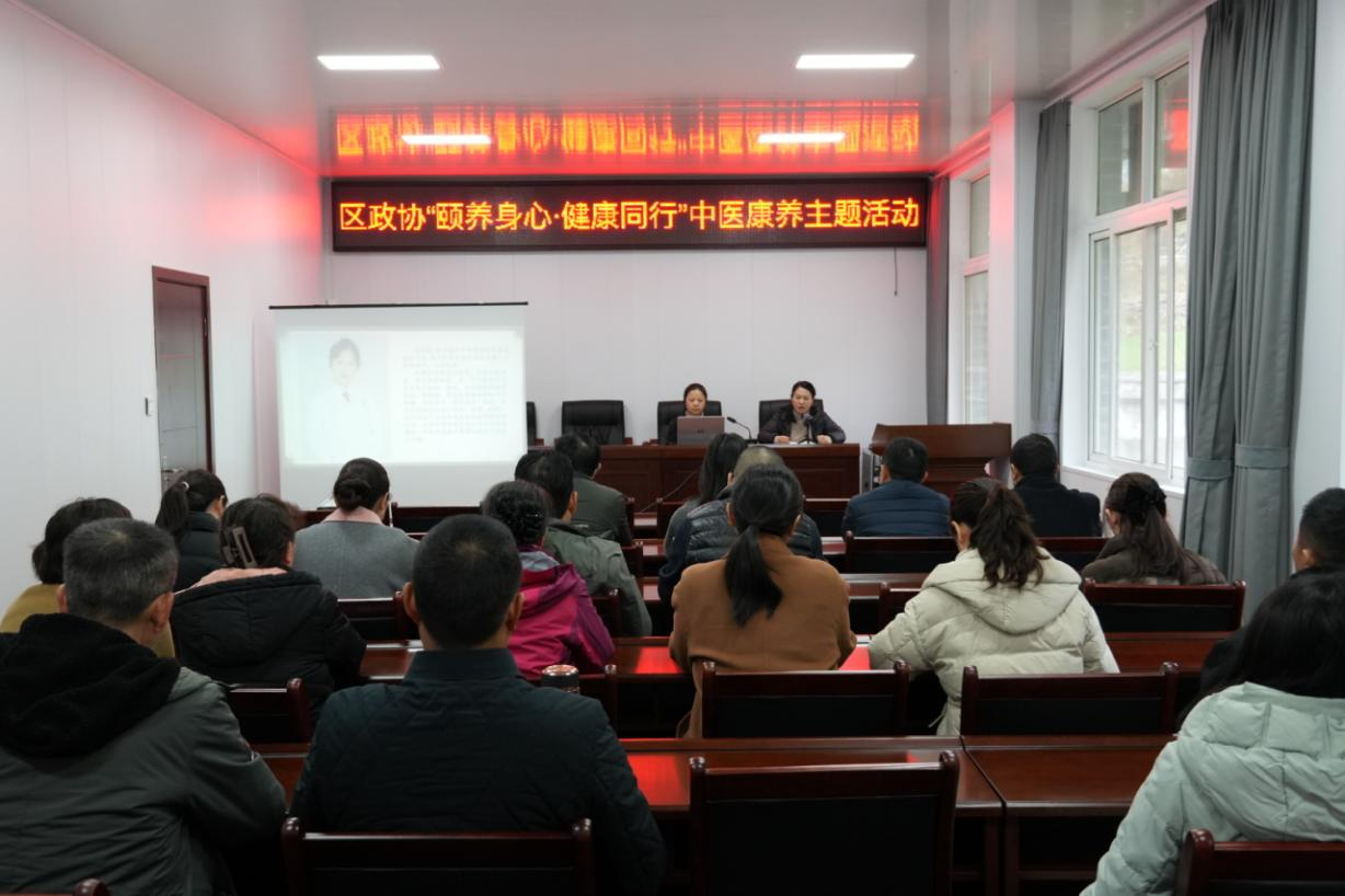 12月2日,区政协开展“颐养身心,健康同行”中医康养主题活动,邀请区中医医院针灸康复科主任马晓霞围绕《亚健康的中医调理》进行专题讲座,区政协副主席石英、王发全,部分区政协委员以及机关干部参加活动。