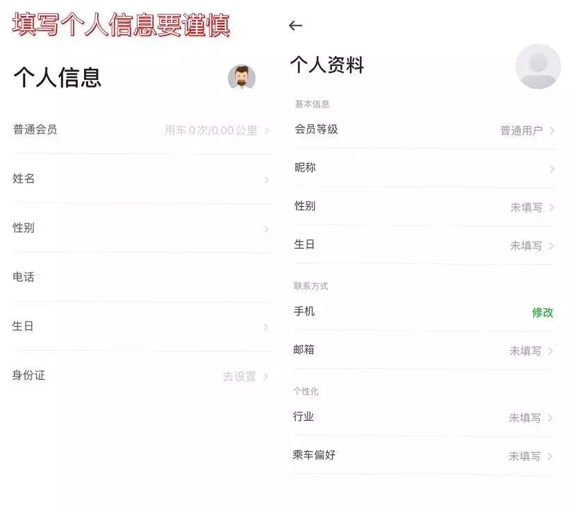 个人信息谨慎填