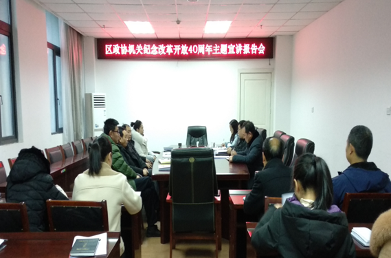 会议对习近平总书记在庆祝改革开放40周年大会上的讲话精神进行了专题宣讲,传达学习了区脱贫攻坚指挥部(领导小组)第三十次会议精神,安排布置了区政协机关近期脱贫攻坚有关工作。