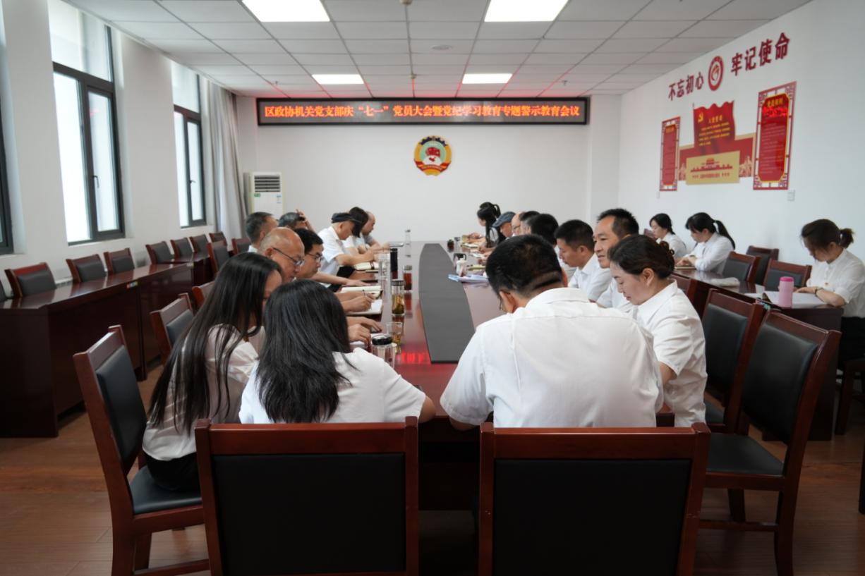 6月27日,区政协机关党支部召开庆“七一”党员大会暨党纪学习教育专题警示教育会议。区政协党组副书记、副主席柴松林主持会议并讲话。