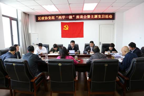 4月29日,区政协党组组织召开“两学一做”学习教育座谈会,学习传达中央、省、市、区委“两学一做”学习教育座谈会精神,安排部署政协机关“两学一做”学习教育工作。区政协主席、党组书记张晓春出席并讲话,党组成员、副主席华昌桂主持会议,副主席苏茜萍、付全宇,区政协秘书长刘玉国出席会议。