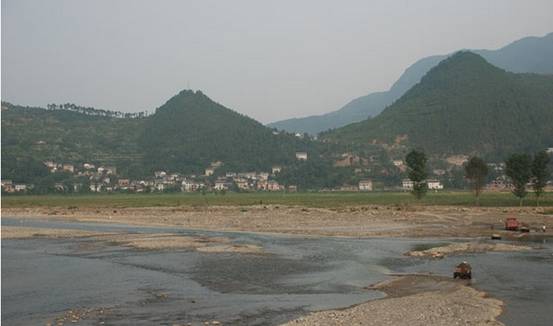 在临近羊木镇的山坡道路上,远远地看到一个小集镇矗立在一个小小的冲积扇形平坝上,几条笔直的街道将这块平坦的土地分成几大块,一条小河从集镇中间淌过,将小镇劈成两半,一条大河从集镇旁边流过,一座大桥将河流两边的土地连结在一起。小集镇四面环山,东面一条山梁上次第排着三个高低不一的山头,像三个站岗的哨兵,山上山下排列着一些白脊青瓦民房,那是社会主义新农村建设成果;西面的山头则小巧秀美,在阳光的映照中显得格外精神。整个集镇正在建设之中,一些街道正用水泥混凝土铺筑,一幢受灾群众安置房即将竣工。置身这座集镇,顿生别有洞天的感受。