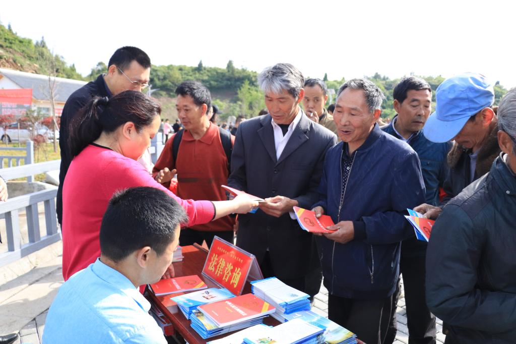 4月27日,朝天区举办“发扬劳模精神.助力脱贫摘帽集中示范活动暨“七进乡村”活动”在蒲家乡罗圈岩村举行,区司法局组织公证、法律援助、法宣股工作人员以及该村法律顾问到场开展法治宣传活动。