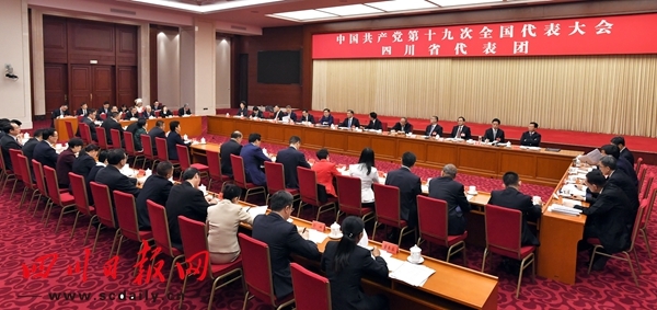 原标题:四川省代表团全体会议讨论习近平总书记作的报告 汪洋参加讨论