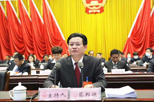 伏玉琼作政府工作报告 梁黎张晓春张开翅出席 李彦江黎龙兵应邀列席