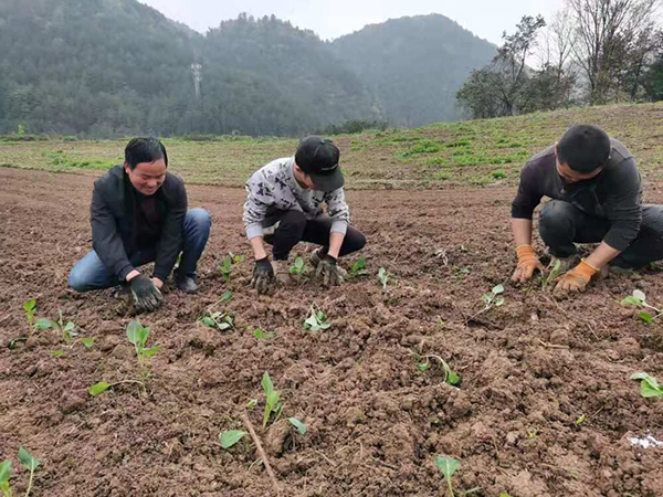 广元市人大代表、朝天区曾家镇白鹰村党支部书记、村主任张晓军(左一)和群众一起劳作