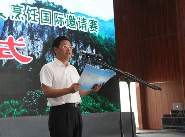 蔡邦银在致辞中指出,朝天依托优越的自然环境和生态资源,大力发展绿色食品和有机食品,构建了“5+N”的特色农业特色产业发展体系,形成了“朝天核桃滚全球,曾家蔬菜香天下”的品牌优势。先后跻身全国绿色农业示范区、全国蔬菜产业重点县、省级农产品质量安全监管示范县、省无公害农产品产地整体认定,被誉为中国核桃之乡、中国高山露地蔬菜之乡。有7个产品获国家绿色食品A级认证、4个产品获有机转换产品认证、4个产品获无公害认证、5个产品获有机产品认证,实现了“产地最放心、产品最安全”。他说,2017中国·广元曾家山生态美食烹饪国际邀请赛旨在通过烹饪技艺的学习与交流,弘扬曾家山美食文化、挖掘生态美食内涵,树立生态美食品牌,繁荣生态康养旅游。蔡邦银希望,各位餐饮业的专家、参赛选手在比赛中加强交流合作,提高技艺水平,宣传朝天特色饮食文化。朝天区将以本次大赛为契机,积极学习借鉴各种烹饪技法,不断提升曾家山菜系特色,提高旅游餐饮文化的档次和水平。