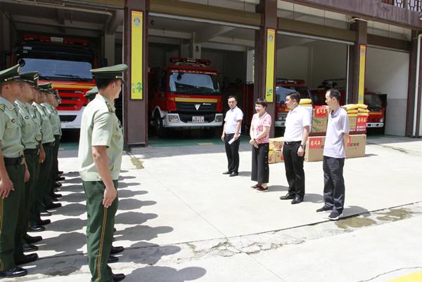 “明天是第91个建军节,我代表区四大班子看望你们,祝你们节日快乐!”在区人武部、区消防大队和驻朝某部,蔡邦银、伏玉琼、梁黎、张晓春与官兵一一握手,为他们送去慰问品,祝他们节日快乐,对他们在7.11抗洪抢险救灾等急难险重任务面前勇挑重担、挺身而出,无私奉献的精神给予高度评价,并向他们长期以来为朝天经济社会发展作出的重大贡献表示感谢。